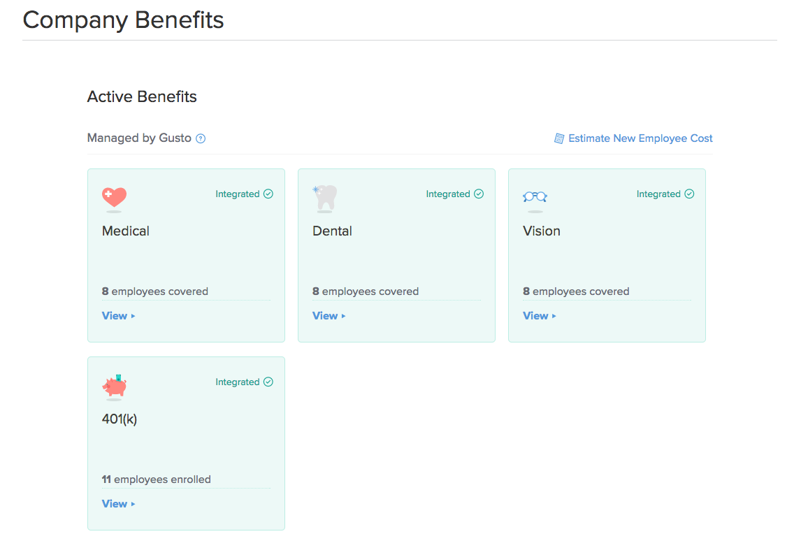| Integration | QuickBooks Payroll | Gusto |